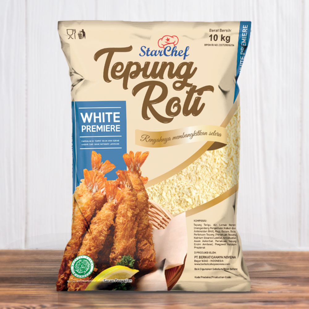 Perbedaan Jenis tepung roti yang lain bisa dibedakan berdasarkan warna dan ukuran partikelnya. PT. Berkat Cahaya Novena memproduksi tepung roti dengan warna: putih, orange, yellow dan mix yang merupakan campuran dari orange dan yellow dengan bermacam macam kombinasi campuran. Warna mix umumnya dipakai untuk Nugget, Pisang Nugget, Kaki Naga, Chicken Stick dan lainnya. Kami memproduksi breadcrumbs menggunakan artificial color dan natural color sesuai dengan permintaan customer. Dengan batas maksimum penggunaan mengacu kepada standard yang ditetapkan oleh BPOM RI dan Standard International lainnya. Ukuran partikel breadcrumbs yang diproduksi mulai dari 1 mm s.d. 12 mm.